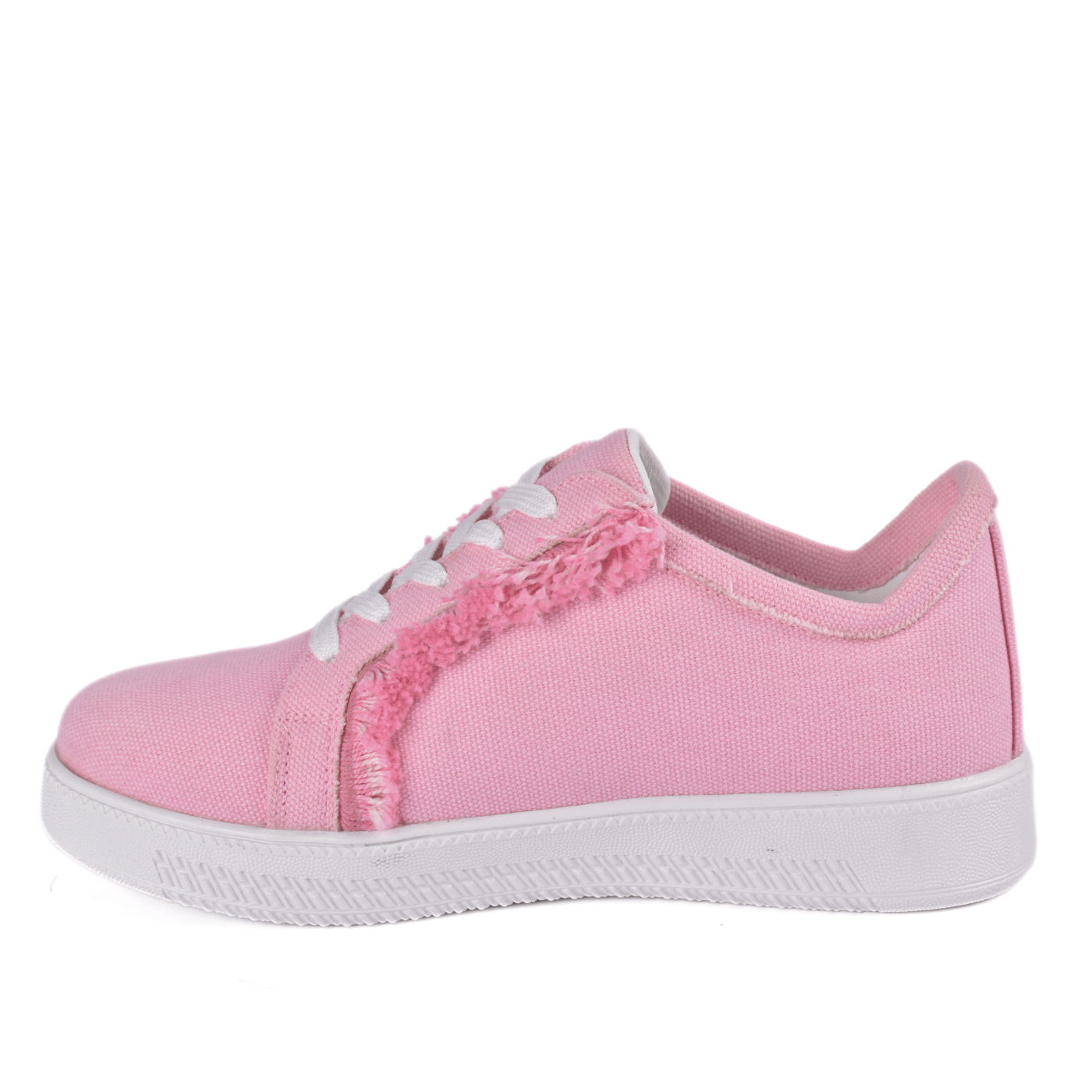 Step out in style with these Trendy Frayed Edge Canvas Trainers! Featuring a fun, unfinished edge detail, they add a playful twist to your everyday look. Lightweight and breathable, they keep your feet comfy while turning heads wherever you go. Perfect for casual outings or weekend adventures, these trainers bring a fresh, carefree vibe to your wardrobe.